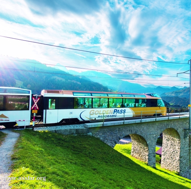 ويتابع قطار البانوراما «جولدن باس لاين» البانورامي – الذي يربط «جولدن باس لاين» ست بحيرات، ويصل ما بين قلب سويسرا الناطق بالألمانية وبين المدن الناطقة بالفرنسية على امتداد بحيرة جنيف - مسيرته في أخضان سويسرا متجهاً غرباً نحو بلدة مونترو أو «عاصمة الريفييرا » الواقعة ضمن محمية خليج بحيرة جنيف. وتتمتع مونترو المحاطة بكروم العنب بإطلالة تحبس الأنفاس على جبال الألب المغطاة بالثلوج، وتنتشر في أرجائها النباتات المرتبطة بالبحر الأبيض المتوسط، مثل أشجار الصنوبر والسرو وأشجار النخيل تنمو هنا. تشارلي شابلن، فريدي ميركوري والعديد من الأشخاص الآخرين من ذوي الشهرة العالمية عاشوا واستمروا في العيش في الريفييرا. وخلال شهري يونيو ويوليو تشتعل مونترو بموسيقى الجاز، الذي يقام خلال ويتميز بحفلات موسيقية في مجموعة متنوعة من المسارح والمتنزهات المشهورة جداً.