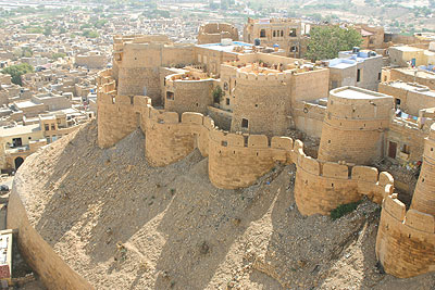عند وصولنا إلى جايسلمير كانت الأرض قد تحولت إلى صحراء. من أكثر المشاهد المؤثرة وجود 99 حصنا داخل حصن جايسلمير الذي يبدو مثل السراب. ويقع الحصن على بعد 40 مترا من المدينة، وبداخله متاهة من شوارع ضيقة مرصوفة بالحجارة وخمسة قصور متصلة بعضها ببعض، ومعابد يعود تاريخها إلى الفترة من القرن الثاني عشر إلى القرن الخامس عشر ميلاديا، ومئات الملاجئ أو القصور الخاصة الرائعة التي تعود ملكيتها إلى أرستقراطيين وتجار. يمكن للسياح خلال الزيارة مشاهدة المدينة والمناطق القريبة من السور المحيط بالحصن.